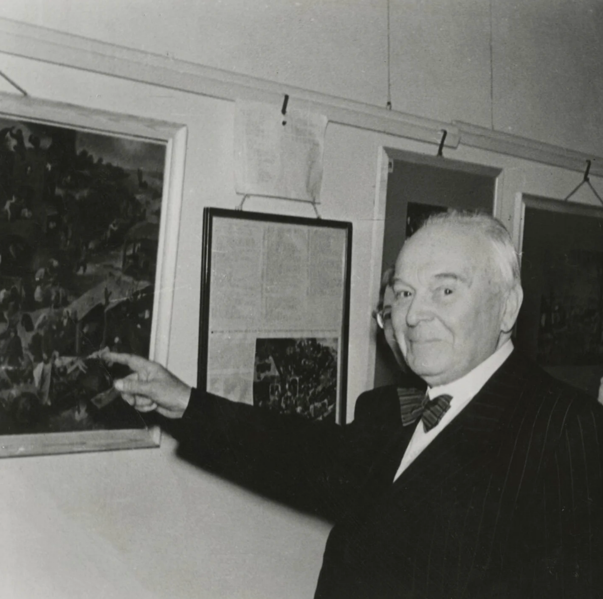 Harry Fett (1875–1962) var en norsk kunsthistoriker, riksantikvar og en sentral kulturformidler. Han arbeidet for bevaring av norsk kulturarv og hadde en sterk tro på kunstens rolle i samfunnet. I 1950 var han med på å stifte Kunst på arbeidsplassen, en organisasjon som skulle bringe kunst ut til folk på arbeidsplasser over hele Norge. Initiativet var basert på en visjon om at kunst ikke bare hører hjemme i museer, men også i dagliglivet, for å inspirere og berike menneskers hverdag.