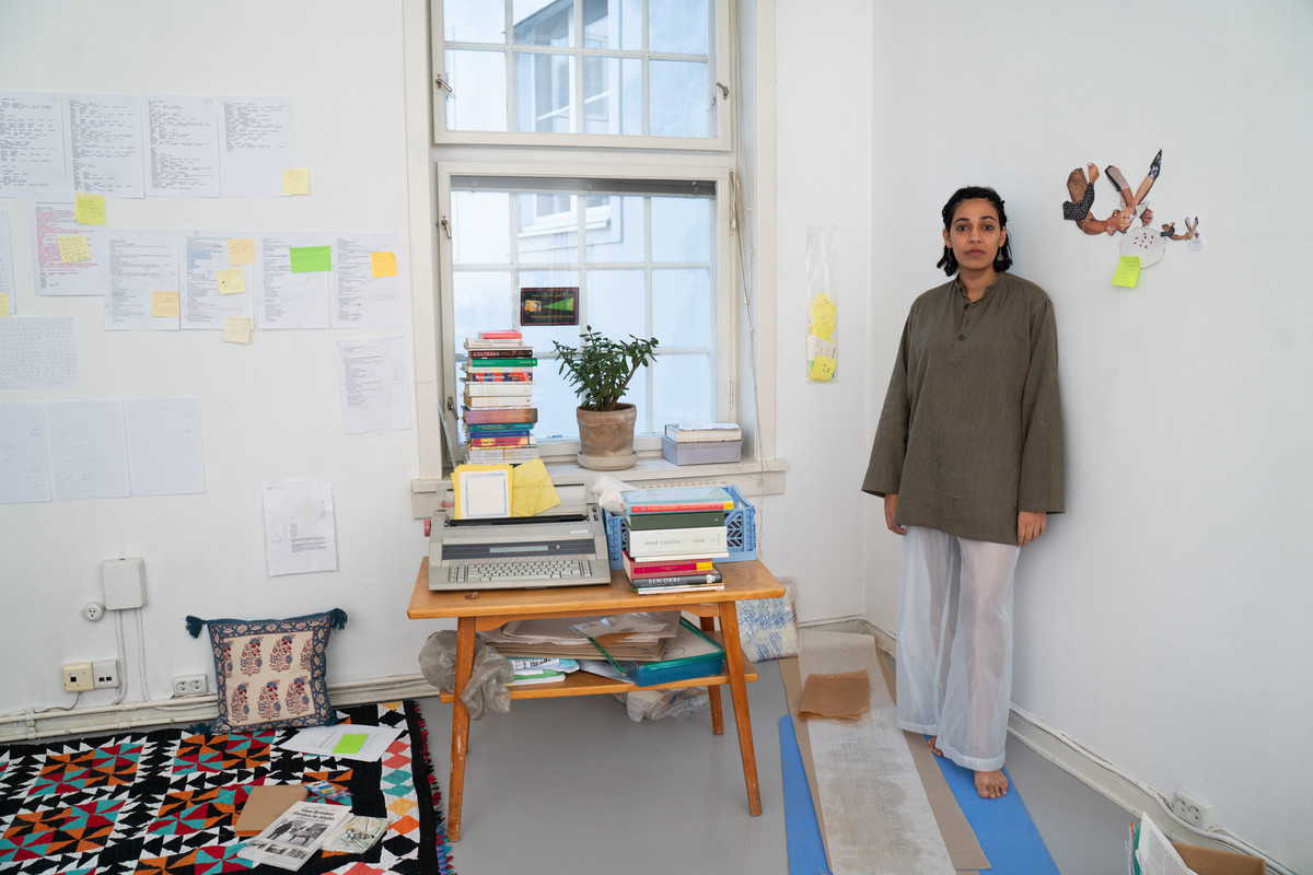 Kazmi (f. 1990, Pakistan) bor og arbeider i Oslo og Karachi. Hennes tverrfaglige praksis beveger seg i skjæringspunktet mellom tekst, installasjon, performance og lyd, ofte i samarbeid med lokalsamfunn.