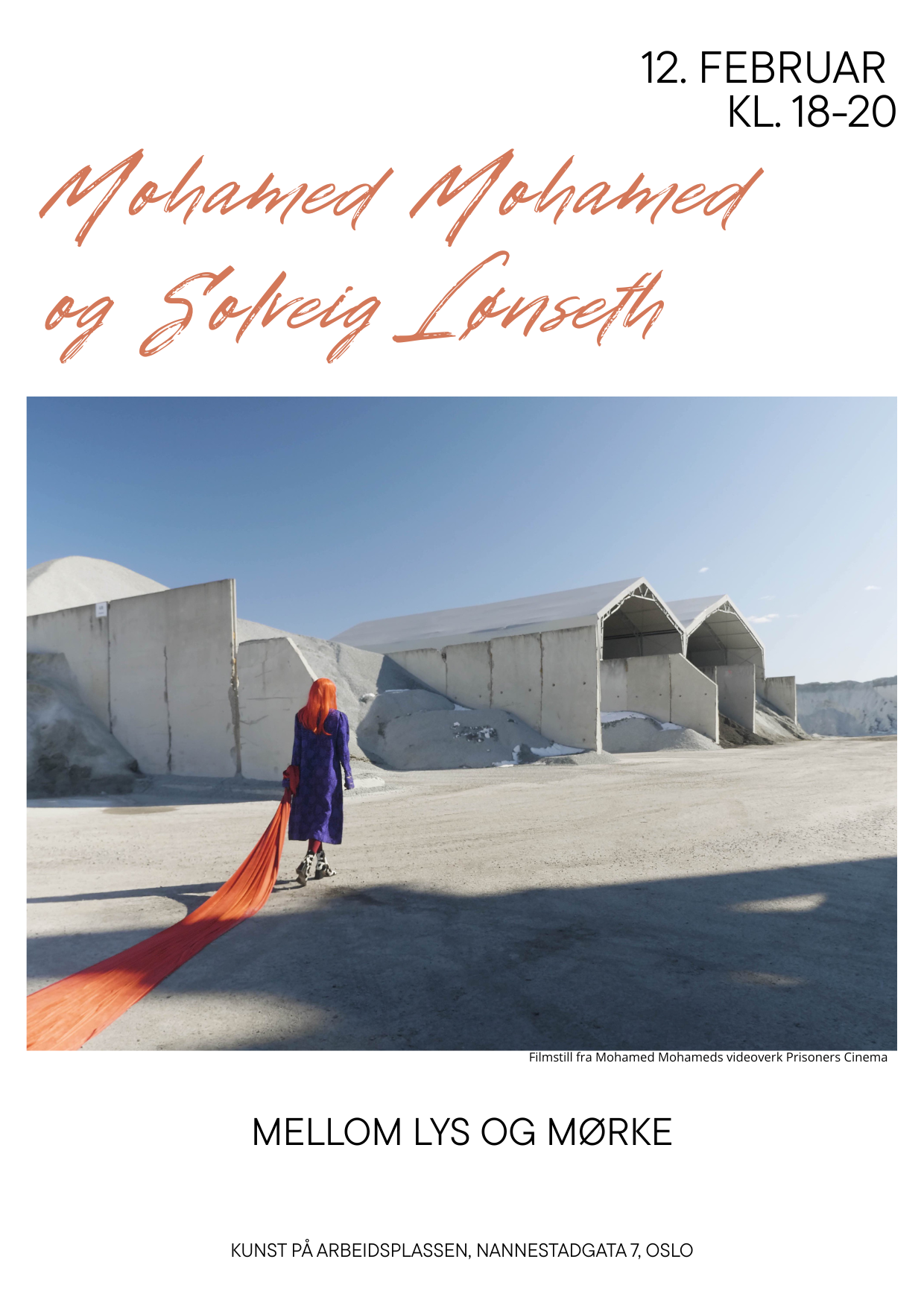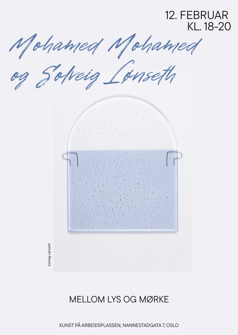 Kunst på arbeidsplassen inviterer til åpning av utstilling med Solveig Lønseth og Mohamed Mohamed i vårt visningsrom på Kampen i Oslo 12.februar kl. 18.