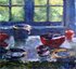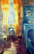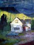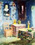 Motivene i denne utstillingen veksler mellom interiører og landskap. Sigrid Øyerhagens (f. 1956) monotypier har referanser til 1800-tallets malerkunst, mens Eva Langaas (1940-2016) beveger seg i grenselandet mellom et figurativt og abstrahert formspråk i sine fargesterke litografier.