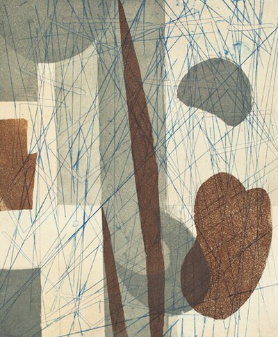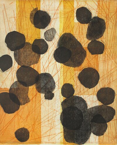 Gerd Arnesens (f. 1920) arbeider springer ut av en sterk form- og fargeforståelse. I overgangen mellom figurasjon og abstraksjon tryller hun frem levende, fantasifulle motiver som både utfordrer og fascinerer visuelt og intellektuelt.