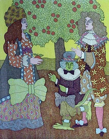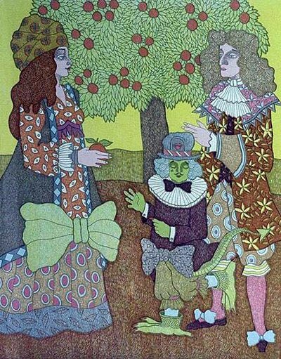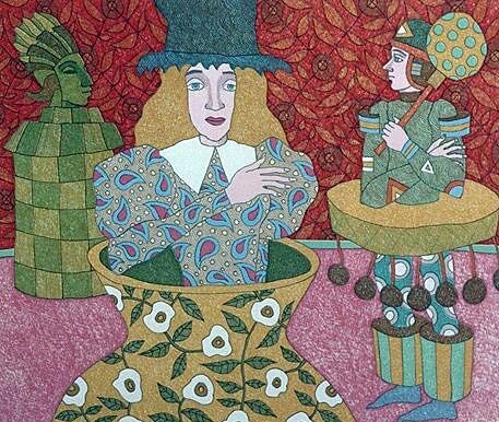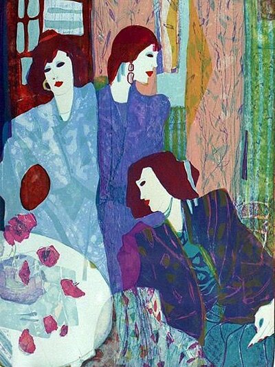 En fargesterk og frisk utstilling med litografier av Trond Botnen (f. 1937), Marie Jose Horverak (f. 1944) og Eva Langaas (f. 1940). Fantasirike motiver med mennesker og dyr.