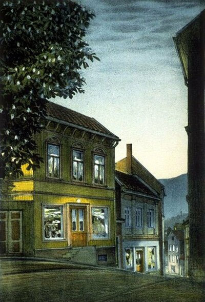 Kjell Thorjussen (f. 1942) arbeider i et naturnært formspråk og tilhører den generasjon kunstnere som i 1970-årene ofte ble kalt “nyromantikere”. Thorjussens motiver er gjerne maleriske gamle hus og fasader i stemningsfull belysning, men også intime naturstudier og åpne landskap i full sol har funnet veien til kunstnerens litopresse.
