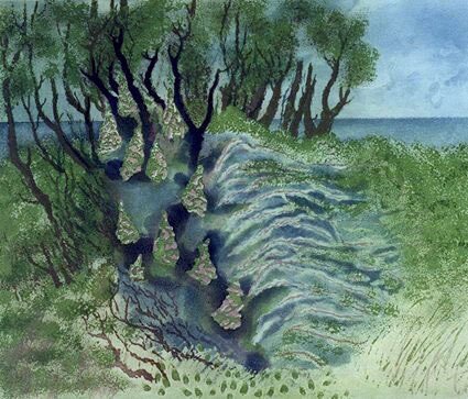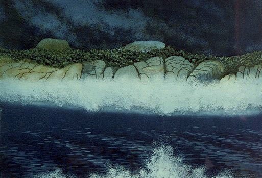 Oddbjørn Stølen (f. 1937) begynte i 1970-årene å arbeide med fargegrafikk, og er blant våre sikreste tolkere av naturopplevelser. Hans etsninger har gjerne en malerisk virkning, preget av stemningsmettet, fuktig havluft og glitrende spill i sjø og hav.