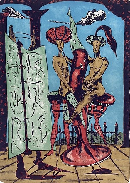 Den Stavanger-baserte kunstneren Egil Bjørnestad (f. 1948) er opptatt av musikk, noe som gjenspeiler seg i motivene der vi finner både musikere, instrumenter og noter. Uttrykket er fabulerende, frodig og fantasirikt.