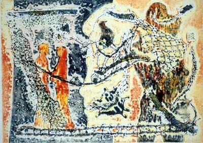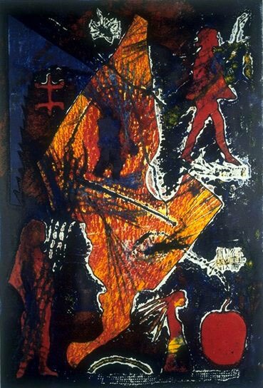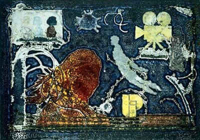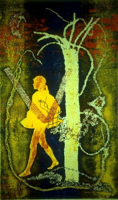 Roald Tellnes (f.1946) arbeider i tradisjonen etter Rolf Nesch med å anvende metalltrykk. Hans formspråk er forsiktig abstrahert, men med gjenkjennelige figurer i bildene. Fargene er sterke og har en egen glød.