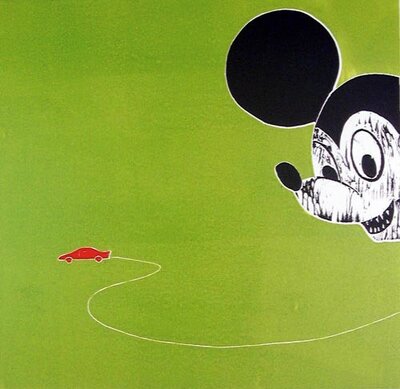 Søstrene Annette (f.1964) og Caroline (f.1968) Kierulf tar i sine tresnitt utgangspunkt i underholdningsindustrien; film, reklame og tegneserier. De benytter seg av det slående reklamespråket og stjeler figurer fra kjente tegneserier.