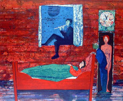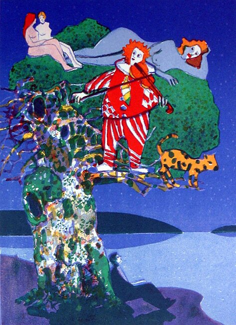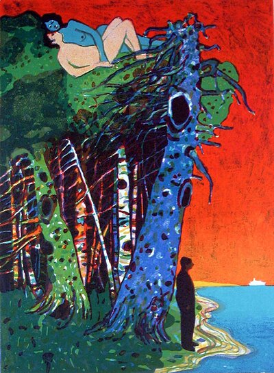 Denne fargerike utstillingen samler tre kunstnere som alle arbeider med natur og figurer i natur, ofte i en fri og fabulerende stil.