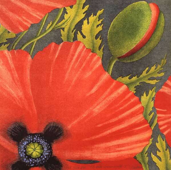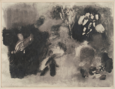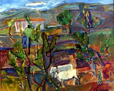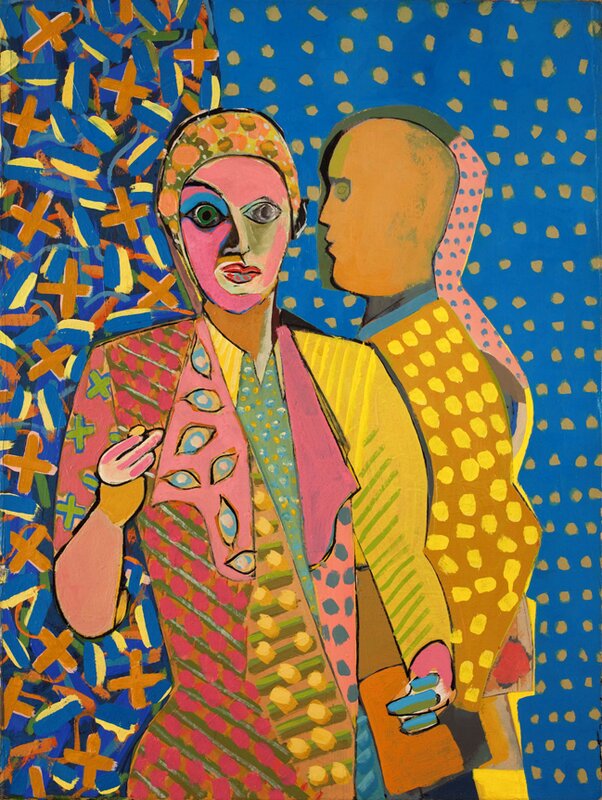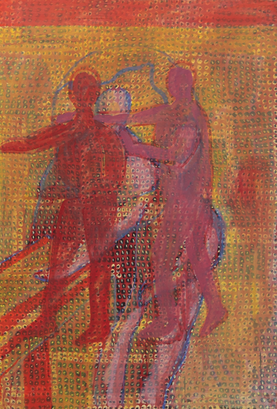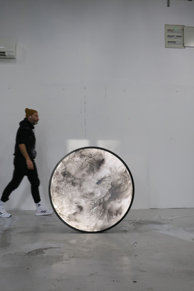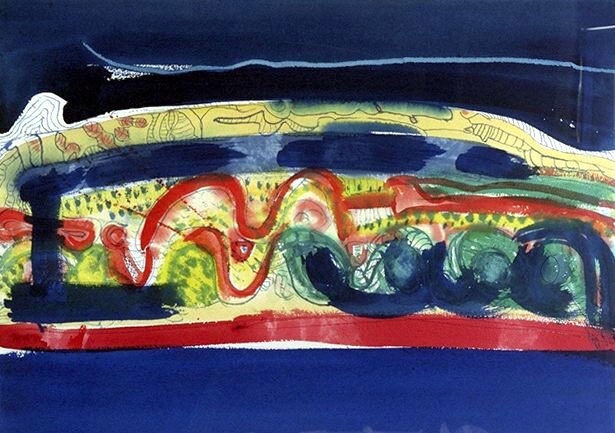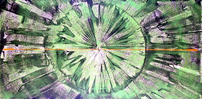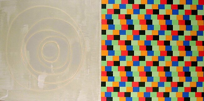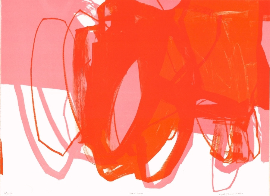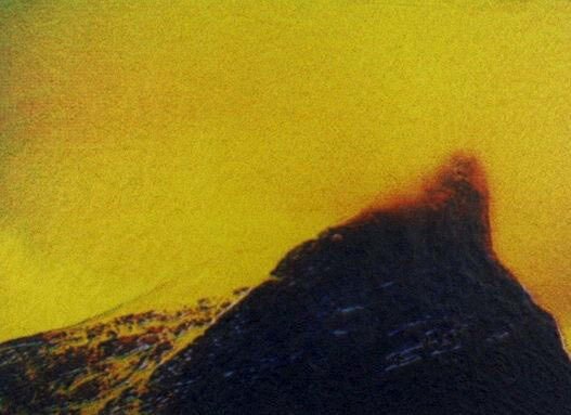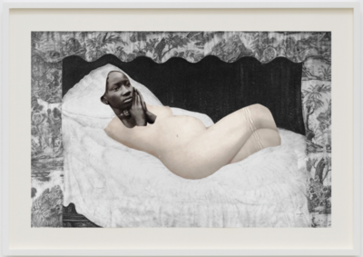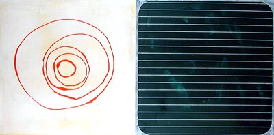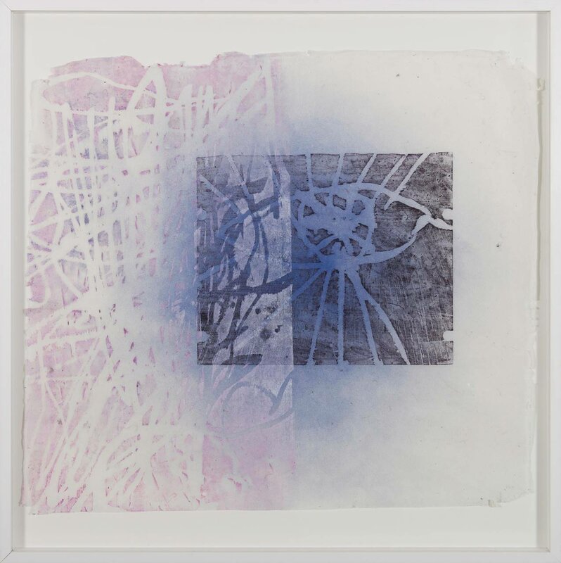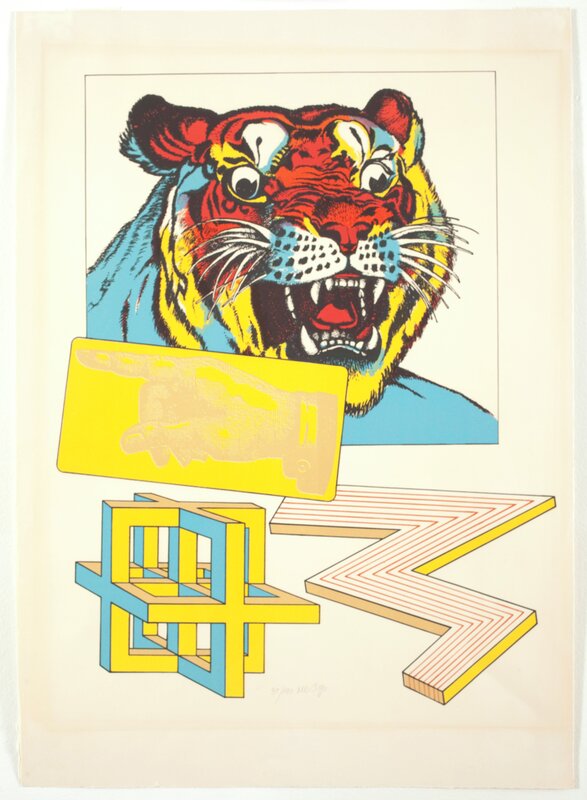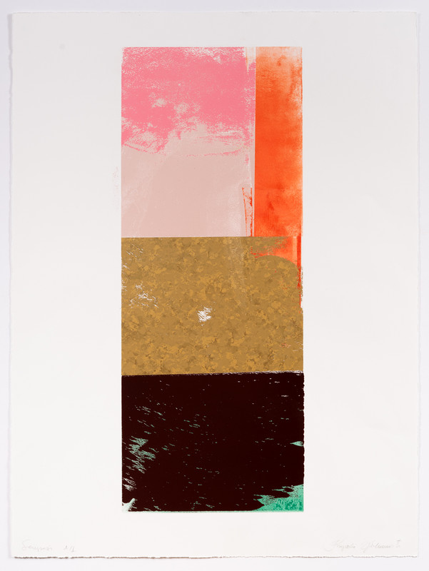 Ramme dekorert med farget reinskinn og garva skinn av reinsdyr og geit. Rammen rammer inn et trykk av Iver Jåks. , 90x80cm