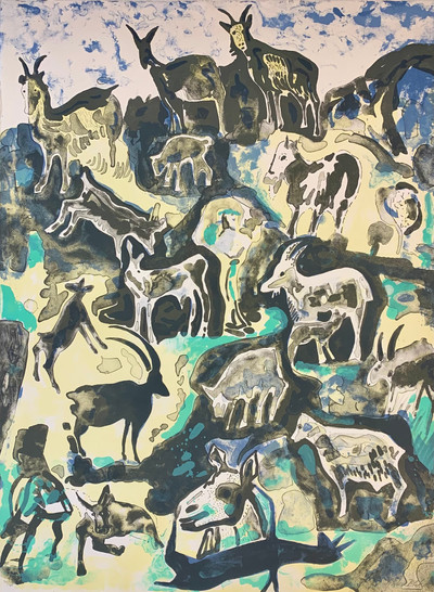 Håkon Bleken (f. 1929) har arbeidet både nonfigurativt og figurativt. I hans produksjon sees tendenser mot et konstruktivt formspråk, men også mot motiver med et følelsesladet innhold. Bleken blir ofte beskrevet som en litterær maler, en som forteller historier i bildene sine, en som har et budskap. Denne utstillingen består av 10 illustrasjoner til Arne Garborgs melankolsk-episke diktsyklus Haugtussa.