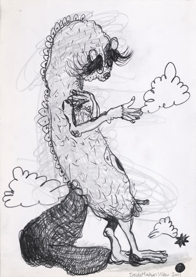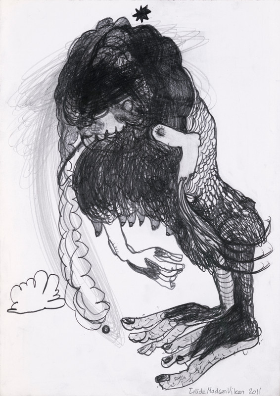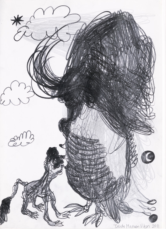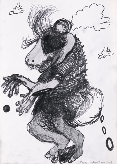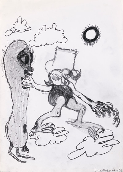 Disse lekne og humoristiske tegningene er fra (2011) da Trude Viken hadde et studieopphold i Portugal. Hun satt i Casa das Historias og drømte seg bort mens hun lot seg inspirere av Paula Rego og hennes kunst.