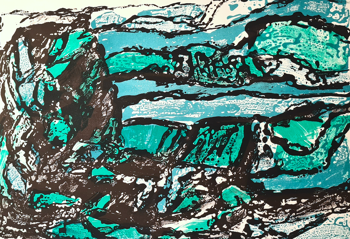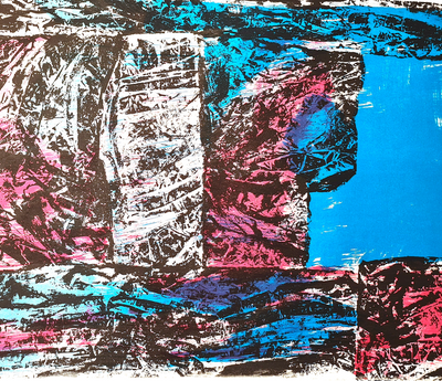 Veggteppe. Digital tekstilprint, blekk og tekstilfarger på ull, montert på bomullslerret og furustang, 200x165cm