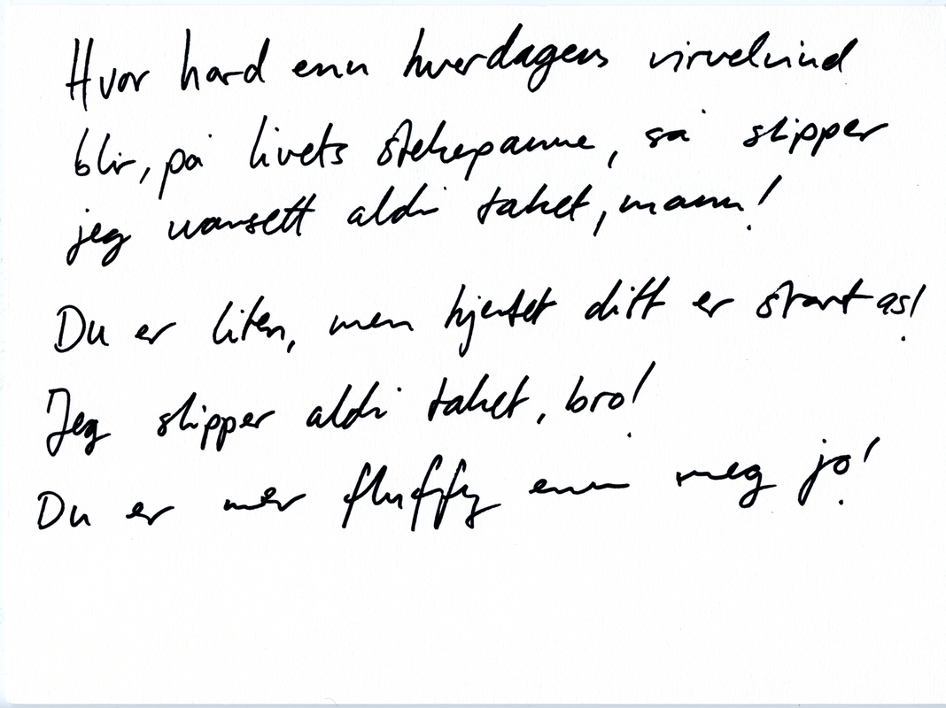 I en tid hvor det digitale livet kan oppleves som det virkelige, og stadig flere av oss sliter med å finne balansen mellom den analoge og digitale verden, ønsker denne utstillingen å presentere tretten kunstnere som utforsker temaer knyttet til det nære og virkelige. Noen av kunstverkene tar utgangspunkt i personlige erfaringer, mens andre reflekterer over fellesskap og tilhørighet. Motivene i utstillingen spenner fra observasjoner av hverdagssituasjoner og ting vi omgir oss med, som en tallerken med middagsrester, eller en søppelpose på vei ut i søpla, til skildringer av travle scener fra vår daglige rutine, for eksempel en trikk fylt opp på en travel fredags ettermiddag etter jobb. Andre arbeider dykker ned i mellommenneskelig relasjoner, følelser og erfaring gjennom både bilde og tekst.