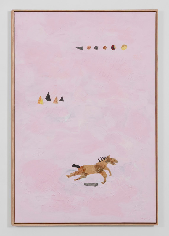 Olje, akryl, sparkel, papircollage og fargeblyant på lerret, 120x80cm