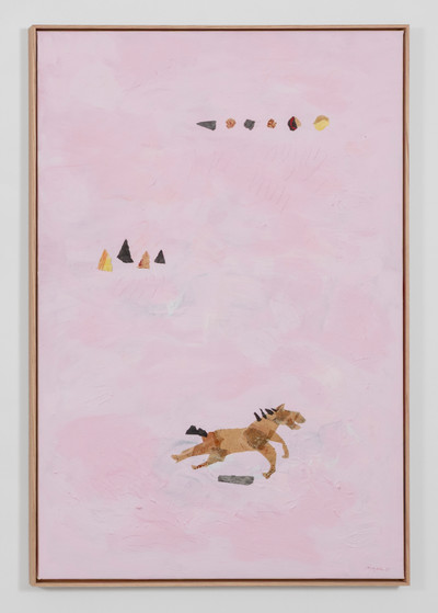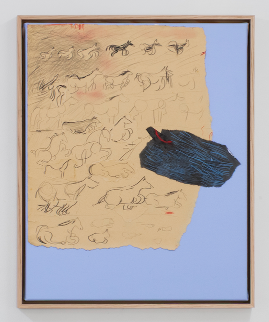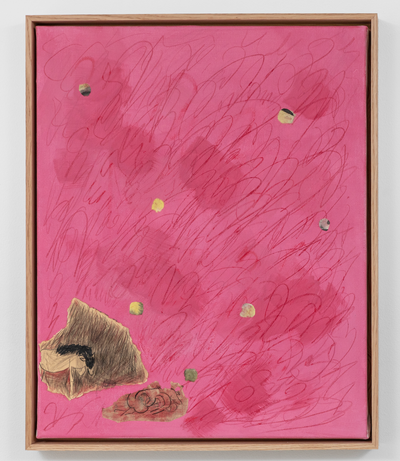 Olje, papircollage, fargeblyant, blekk og oljekritt på lerret, 40x50cm