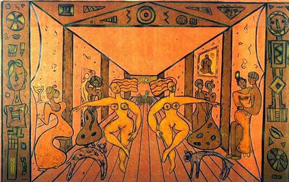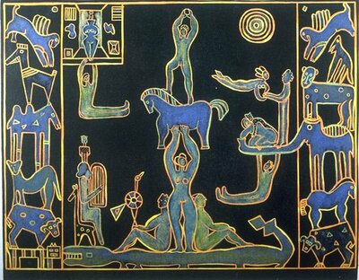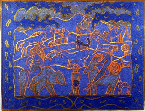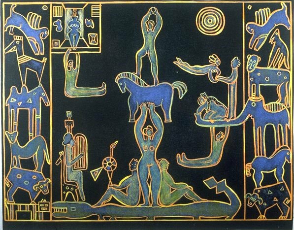 I denne utstillingen møter vi Eli Hovdenaks (f. 1956) humoristiske tresnitt, Tore Aarholts (f. 1945) abstrakte figurer og Petite Werenskiolds (f.1947) underfundige, overraskende fabler. Hovdenak og Aarholt arbeider med monokrome flater som gir en slående, plakatlignende og nesten tegneserieaktig effekt, Werenskiold er inspirert av Matisse sine dekorative menneskeskikkelser.