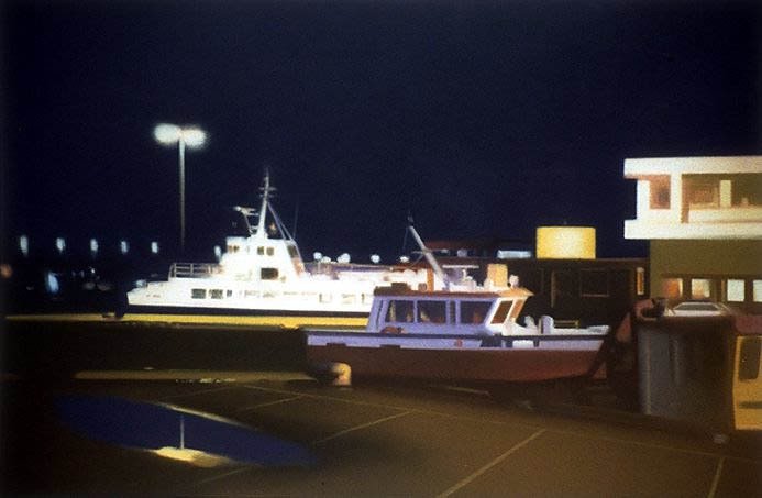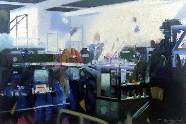 Roald Kyllingstad (f.1942) arbeider med pastelltegning i en frapperende, nesten fotorealistisk stil der han henter sine motiver fra utstillingsvinduer, butikkinteriører, containerhavner og fabrikkområder.
