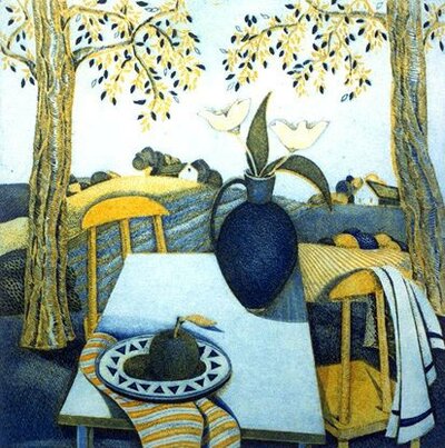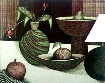 Rigmor Hansen (1941-1995) var en kresen grafiker som behersket sitt fag til fulle. Hennes landskaper og stilleben har noe tidløst over seg og er preget av sjeldne og velbalanserte fargeharmonier.